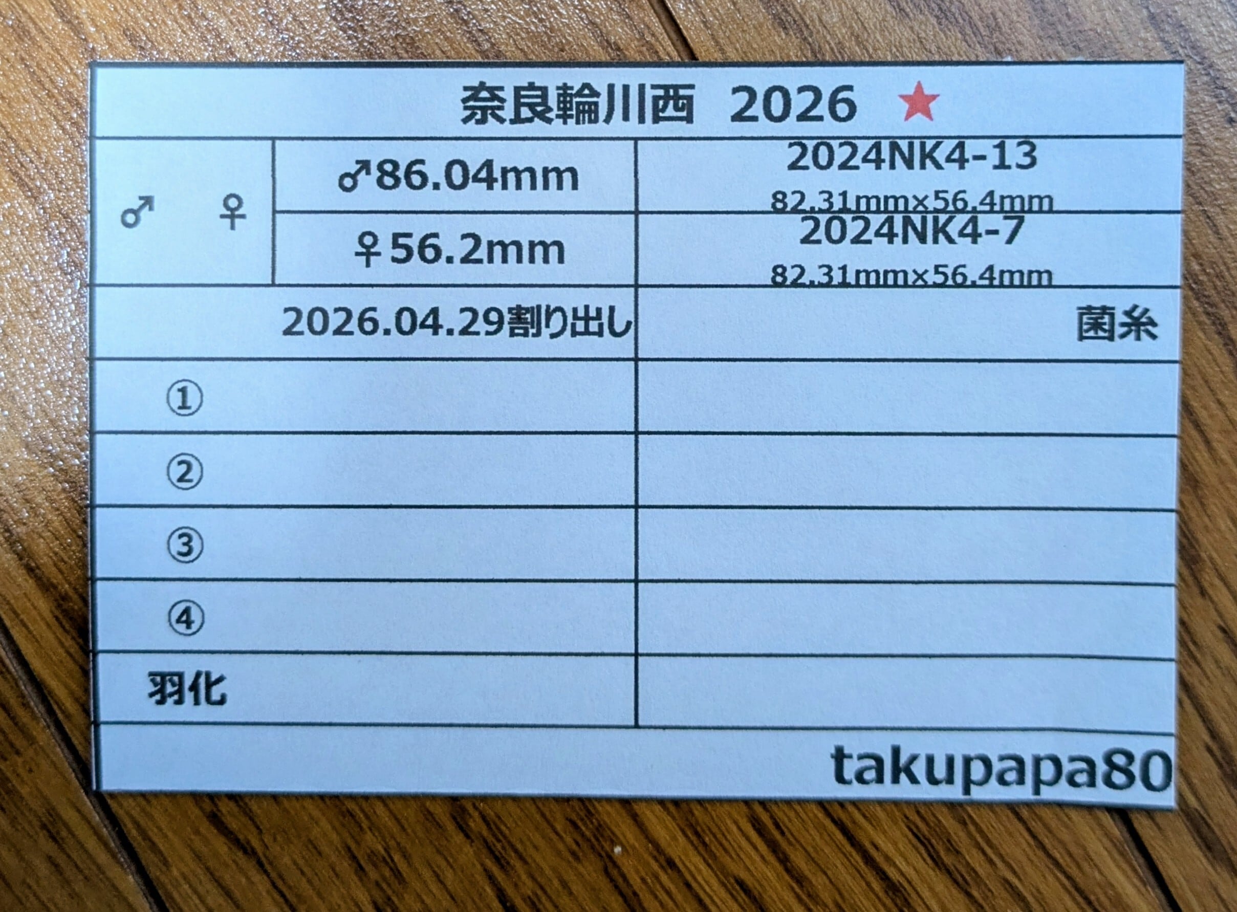 ※出品の幼虫にはブリードデータ(管理表)をお付け致します。
